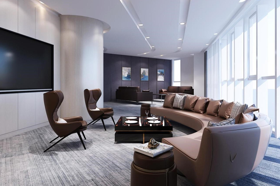 注重空間的開放流動和相對獨立,以意識形態(tài)打破空間封閉個體,重組空間關系,室外環(huán)境和室內空間無界共生關系。設計表現(xiàn)不要被材質所束縛,石材的肌體組合、木材的溫潤體貼,玻璃的有序無界,既蘊含力量又平靜和諧。作品整體自信而不拘小節(jié),隱喻企業(yè)可持續(xù)發(fā)展的未來和國際化的品質。