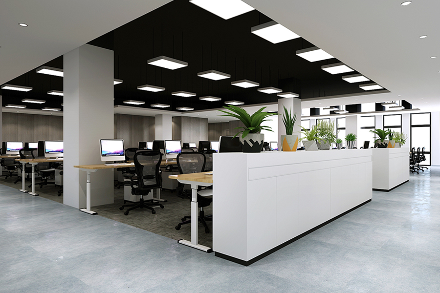辦公室裝修室內(nèi)界面處理宜簡(jiǎn)潔,著重營(yíng)造空間的寧?kù)o氣氛,并考慮到便于各種管線的鋪設(shè)、更換、維護(hù)、連接等需求。隔斷屏風(fēng)選擇適宜的高度,如需保證空間的連續(xù)性,可根據(jù)工作單元及辦公組團(tuán)的大小規(guī)模進(jìn)行合理選擇。