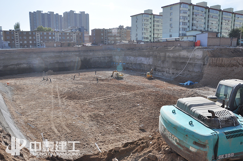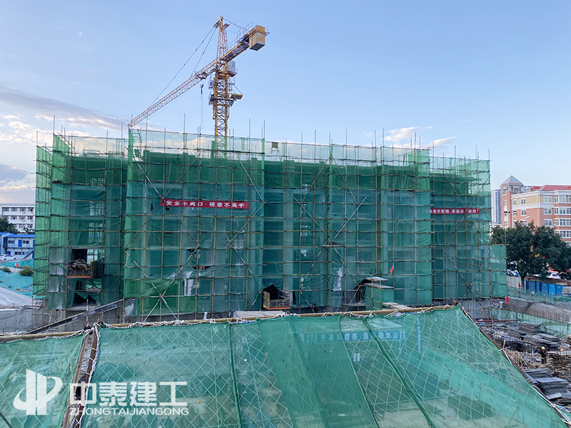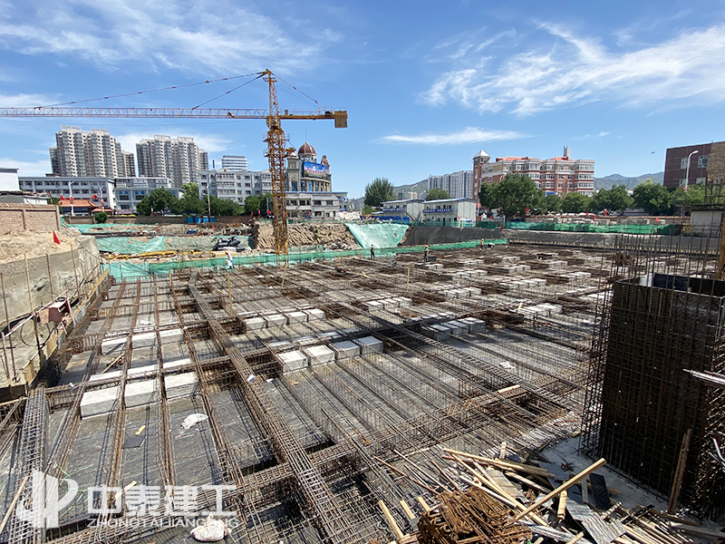 該項目于2019年10月25日開工進場,經過前期的不懈努力,順利完成基槽平整,以及釬探工作,并且在寒冬來臨之前,順利完成1#樓筏板的澆筑。2020年4月初,面對嚴峻的疫情挑戰(zhàn),中泰建工認真落實疫情防控,積極配合建設單位以及各政府部門完成檢查,確保達到疫情恢復施工要求,順利恢復施工,2020年6月17日全部完成1#樓正負零以下的地下主體工程。