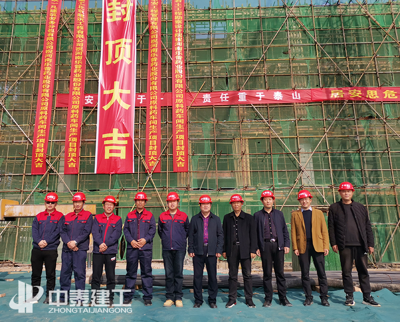 項(xiàng)城市樂普藥業(yè)股份有限公司總經(jīng)理于立強(qiáng),財(cái)務(wù)總監(jiān)程忠學(xué),項(xiàng)目負(fù)責(zé)人梁西強(qiáng)、賈楠楠等多位領(lǐng)導(dǎo)參加了封頂儀式。