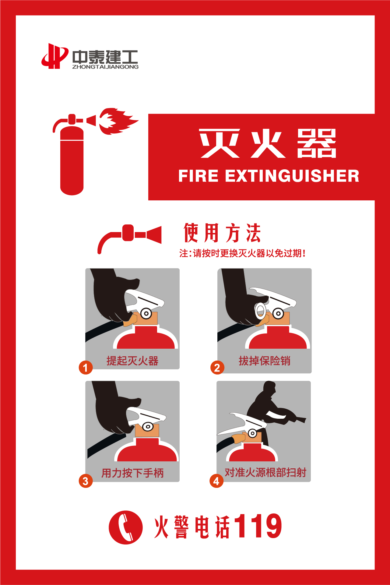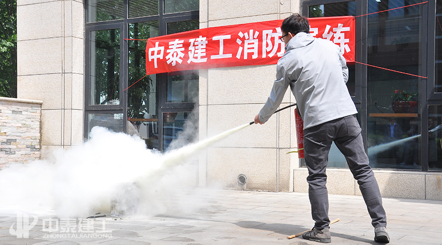 使用方法: 使用干粉滅火器或者二氧化碳滅火器時(shí),應(yīng)站在火源前1.5米-3米上風(fēng)方向的位置,將保險(xiǎn)銷(xiāo)拔掉,一只手握住噴嘴,另一只手握住壓把,瞄準(zhǔn)火源進(jìn)行撲滅,火滅后放松壓把。 下圖為中泰建工員工對(duì)于常見(jiàn)的干粉滅火器進(jìn)行演習(xí)示范: