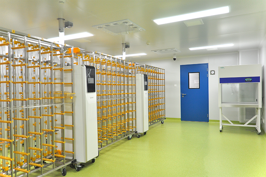 工程介紹 工程名稱:中美冠科生物技術(shù)有限公司凈化工程 施工面積:4607 ㎡ 工程地址:北京市昌平區(qū) 工程概況: 本工程共2層,其中二層為十萬級(jí)實(shí)驗(yàn)室、四層為萬級(jí)動(dòng)物房。二層面積約2046 ㎡,其中潔凈細(xì)胞間為800 ㎡,包括細(xì)胞培養(yǎng)間、細(xì)胞準(zhǔn)備間。病理區(qū)面積約200 ㎡,包括染色間、切片室、脫水包埋間、取材室。體外診斷區(qū)域130 ㎡,包括低溫冰箱室、洗消間、流式細(xì)胞間、液氮間、IT機(jī)房及其余輔助房間等。 ? 二層實(shí)驗(yàn)室 V V 實(shí)驗(yàn)室對(duì)室內(nèi)的壓力、微生物控制及溫濕度控制相對(duì)工業(yè)潔凈室更要嚴(yán)格,采用較好的密封并且不產(chǎn)塵的材料進(jìn)行隔斷、吊頂裝修,從而達(dá)到更好的效果。 立柱采用功能性設(shè)計(jì),合理的利用了其使用價(jià)值,家具采用倒角的設(shè)計(jì),與地面墻面之間無縫貼合。