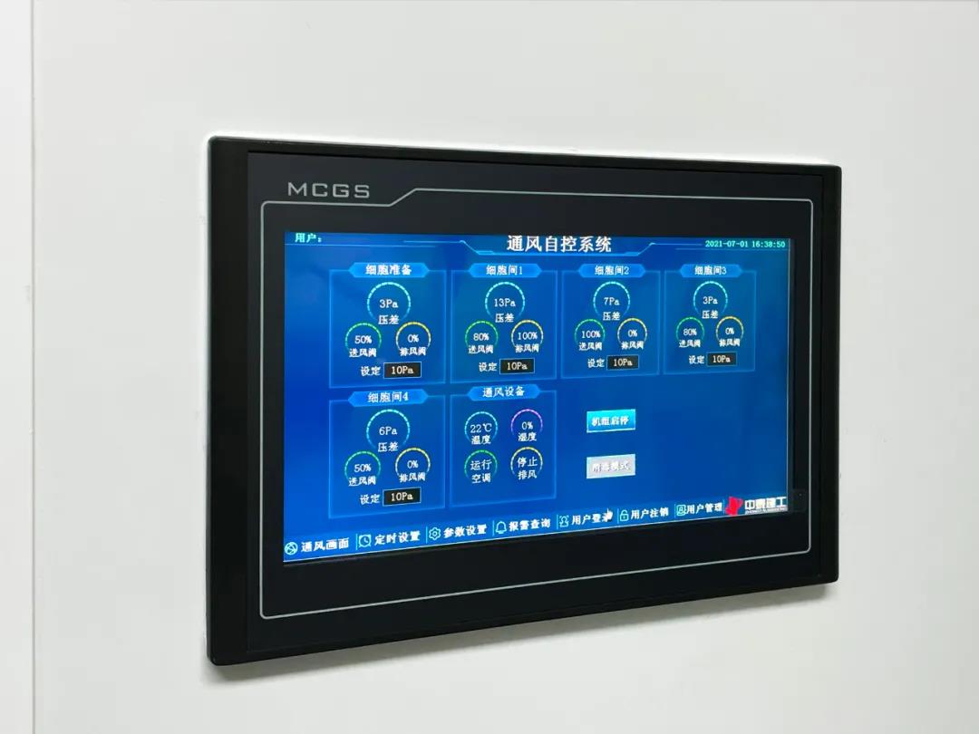 采用PLC全自動(dòng)控制系統(tǒng); 智能自控調(diào)節(jié); 實(shí)時(shí)調(diào)節(jié)室內(nèi)壓力及換氣次數(shù); 保證房間內(nèi)恒溫環(huán)境。