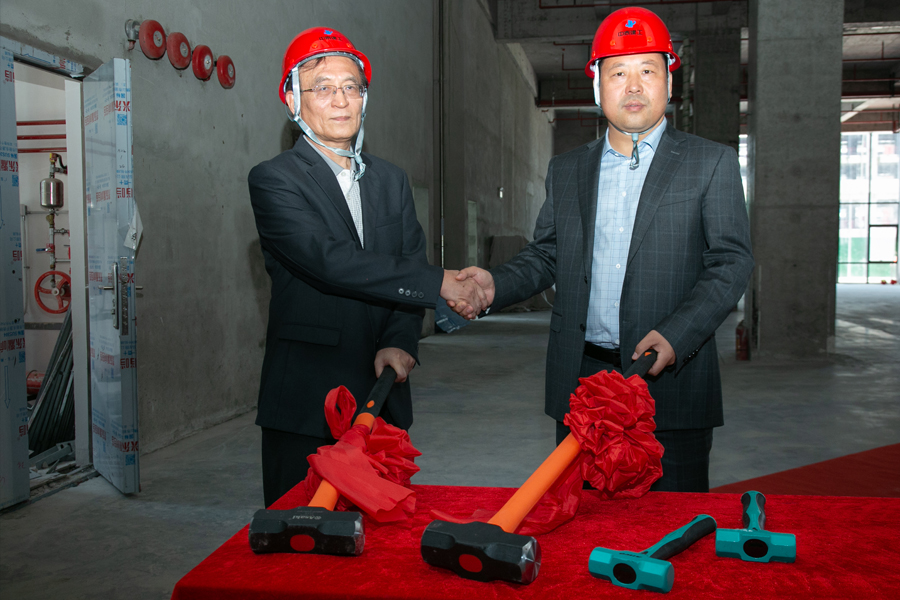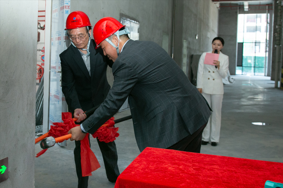 先健副總裁韓江波、中泰建工董事長常占軍進行敲墻環(huán)節(jié) 一錘開工大吉 二錘百無禁忌 三錘萬事如意
