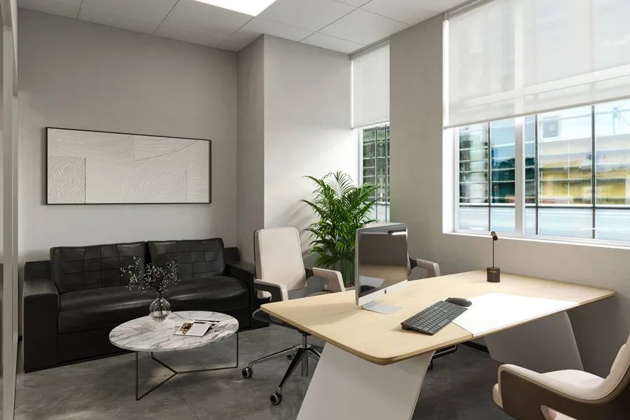 裝修工程 四層北側(cè)辦公區(qū)五層休息區(qū)以及公共走廊衛(wèi)生間為裝修裝飾工程,本次設(shè)計以“簡潔、高效、經(jīng)濟(jì)、活力”為出發(fā)點(diǎn),打造“人性化設(shè)計”現(xiàn)代辦公空間。 開放辦公區(qū)
