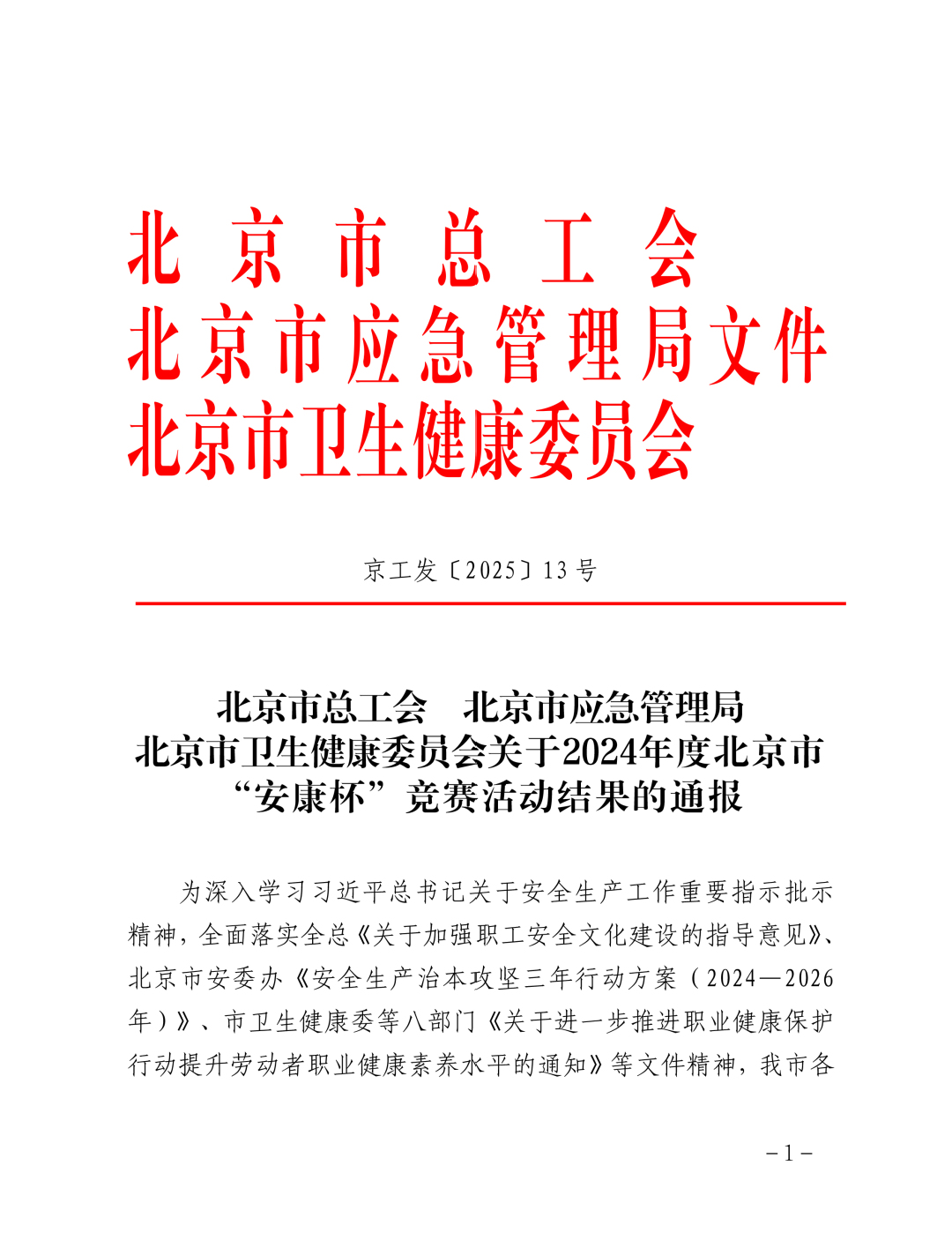 北京市“安康杯”競賽活動由市總工會、市應(yīng)急管理局、市衛(wèi)生健康委員會等部門聯(lián)合開展,為深入學(xué)習(xí)習(xí)近平總書記關(guān)于安全生產(chǎn)工作的重要指示批示精神,全面落實(shí)相關(guān)安全生產(chǎn)和職業(yè)健康等政策文件,通過競賽形式推動企業(yè)安全生產(chǎn)和工會勞動保護(hù)工作創(chuàng)新發(fā)展,提升職工安全健康意識和自我保護(hù)能力,維護(hù)職工的安全健康權(quán)益,為安全生產(chǎn)形勢貢獻(xiàn)力量。