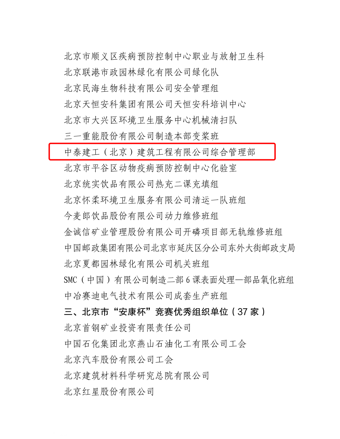 近日,北京市總工會、市應(yīng)急管理局、市衛(wèi)生健康委員會聯(lián)合公布北京市“安康杯”競賽活動結(jié)果的通報(bào),中泰建工(北京)建筑工程有限公司綜合管理部榮獲2024年度北京市“安康杯”競賽優(yōu)勝班組,這不僅是對公司安全生產(chǎn)工作的高度認(rèn)可,更是對全體員工踐行安全理念、共筑安全防線的生動詮釋。