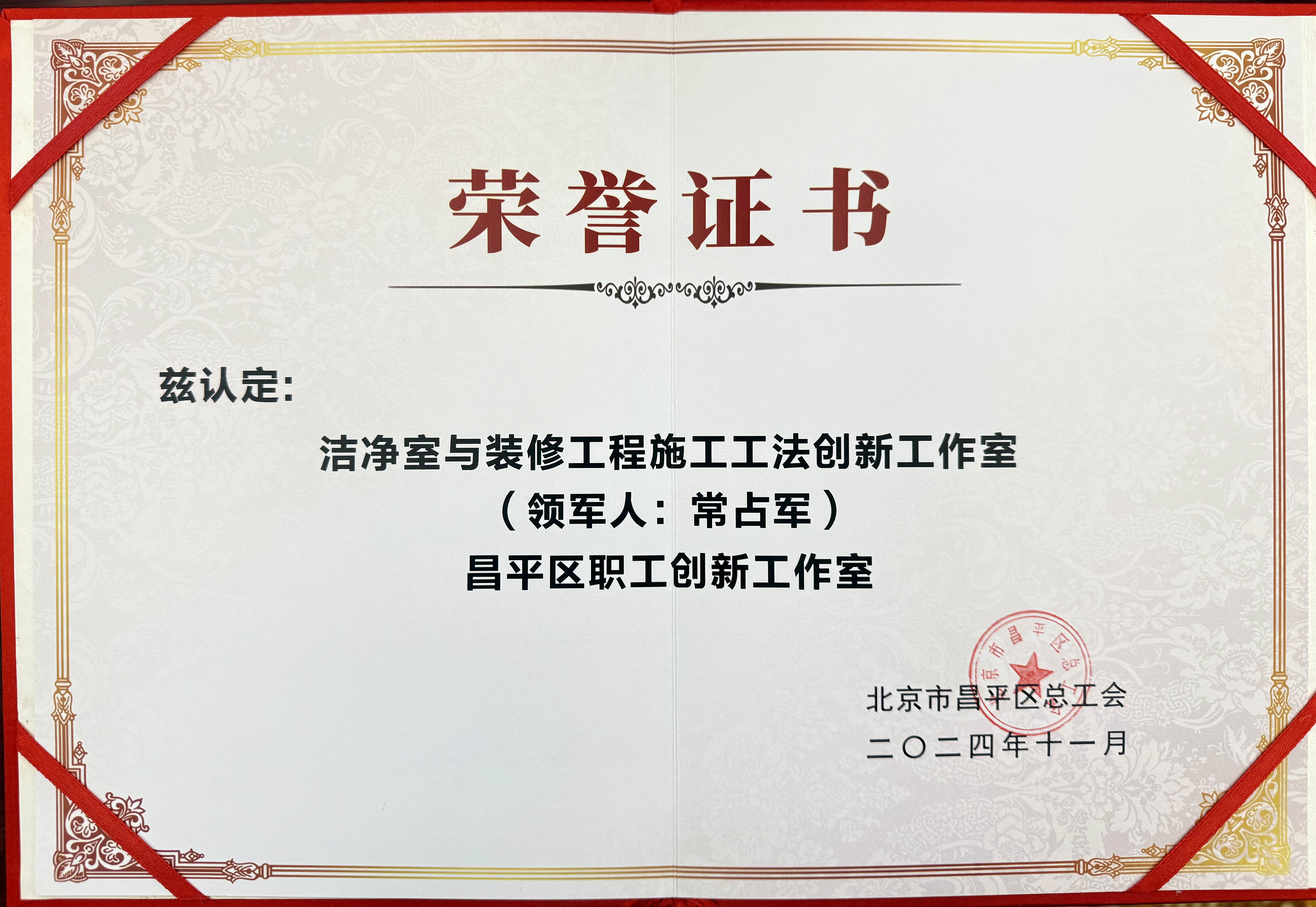 中泰建工 | 潔凈室與裝修工程施工工法創(chuàng)新工作室-榮獲區(qū)級(jí)星級(jí)榮譽(yù)稱號(hào)?。。?