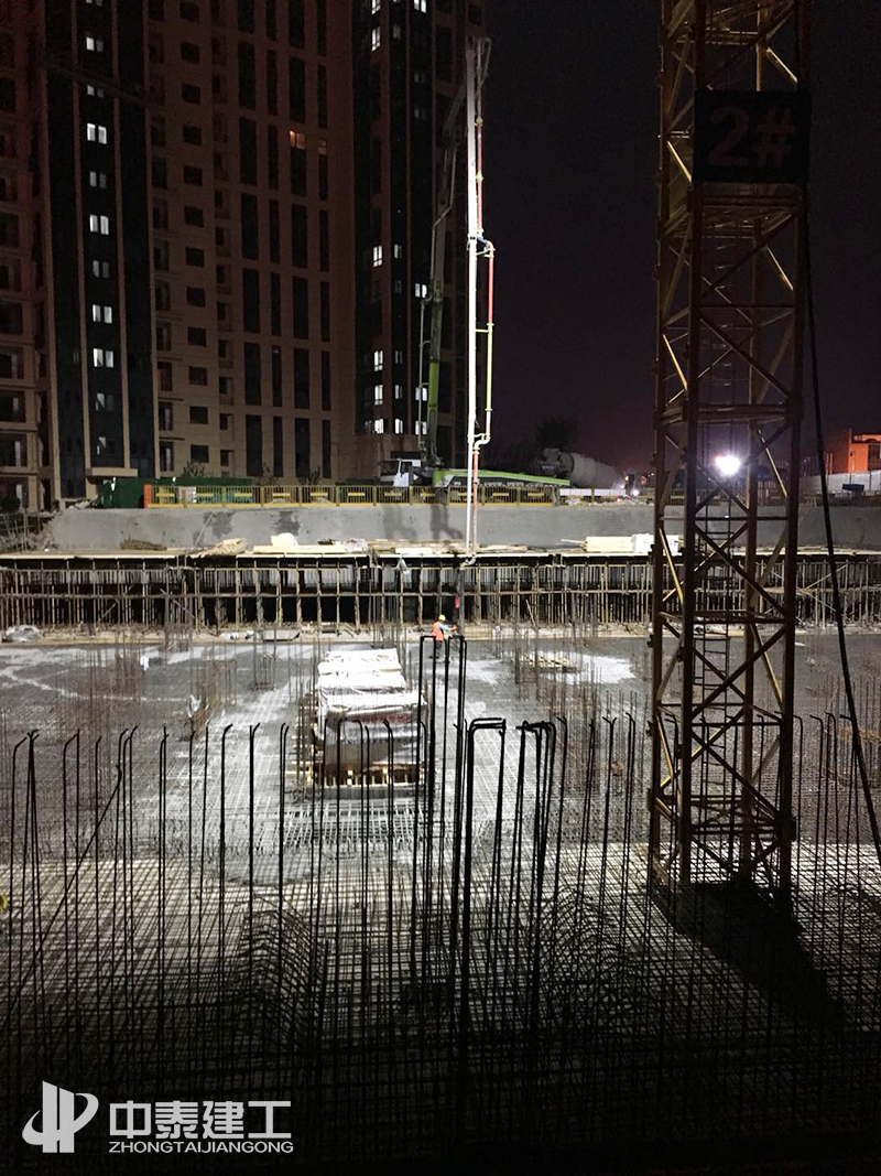 經(jīng)過(guò)63個(gè)小時(shí)不間斷澆筑,中泰建工承建的臨沂·榮盛華府房屋建筑工程項(xiàng)目全體參建人員以積極認(rèn)真的工作態(tài)度、飽滿(mǎn)的工作熱情,順利完成了主樓筏板大體積混凝土澆筑任務(wù),實(shí)現(xiàn)一次連續(xù)無(wú)停頓澆筑混凝土3100余方。