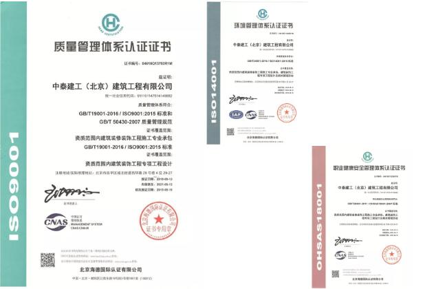 中泰建工目前擁有各類專業(yè)技術(shù)人次300余人,其中高、中級工程師100人,持證一、二級建造師59人,建委八大員100余人,并擁有各類大中型工程機(jī)械設(shè)備以及檢測儀器,具有國家“建筑工程”、“市政公用工程”、“機(jī)電工程”,三項施工總承包資質(zhì),建筑裝飾工程設(shè)計施工一體化等八項專業(yè)承包資質(zhì),并成功取得ISO9001質(zhì)量管理體系認(rèn)證,ISO14001環(huán)境管理體系認(rèn)證,OHSAS18001職業(yè)健康管理體系認(rèn)證,被評為AAA級企業(yè),并于2018年順利晉級為國家級高新技術(shù)企業(yè)。